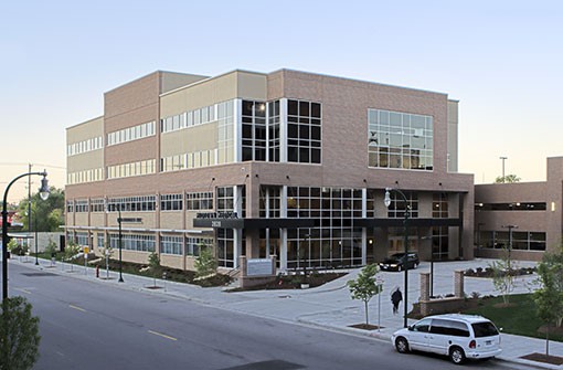 MRI equipment is located on the first level with high density storage at the upper floors. There is a second level skyway connecting the MedicalOfficeBuilding and a new parking ramp.